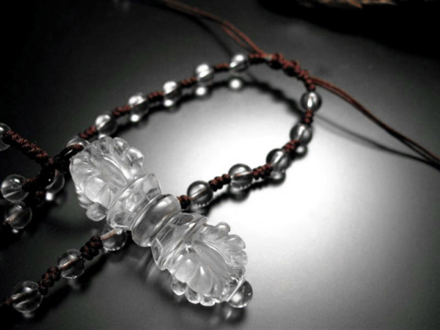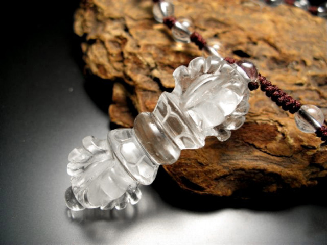 サイズ 五鈷杵約40mm-42mm 紐に水晶6mmが編みこんであります。 首周り 47cmから65cmまで調整可能。 |