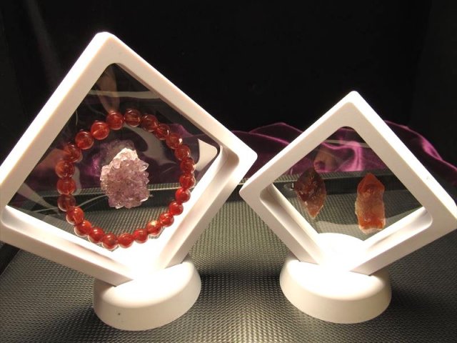宙に浮くように飾れる簡単ディスプレイ 【モダンなプラスチック製のコレクションケース入荷!!】 フィルム部分サイズ約70×70mm 二つ折りのケースに透明なフィルムが貼り付けられており、2枚のフィルムに挟むかたちで小さな石やアクセサリー、写真などを飾っておけるケースです 専用の台座が付属し、直立させることも可能です 透明なフィルムに挟み込むため、まるで中の物が宙に浮いているようなデザイン性に優れたケースです。 アイデア次第では様々なものを飾っておけるフロートコレクションケース、是非 |