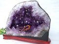 大人気、迫力のアメジストドームの入荷です。 複数のブレスレットが充分に浄化出来る奥行があります。 全体のシルエットはバランスの取れた形、見るからに強いパワーを感じますよ。 アメジストや水晶は空洞内に溜まったケイ酸を含む熱水が徐々に冷えていく過程で結晶化するといわれています。 そのため空洞の内側に結晶がたくさん付いており、神秘的で迫力の姿になります。 その姿は多くの人を魅了する力を秘めています。 【効能】 アメジストドームは主に金運・財運の上昇、人間関係の向上という効果があります。 もともとアメジストの持っているヒーリング効果や直感力を高めるパワーがドーム形状を持つことによって高められ、ワンランク上の自分にステップアップできるとされています。 現物撮影の一点もの商品です。 |