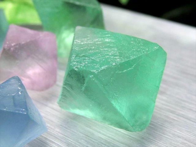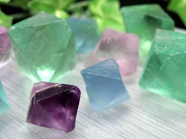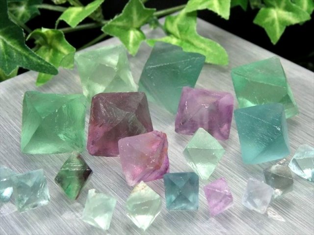 ※商品画像の最後の2枚が今回入荷の抜粋2袋分です、品質や色味、量の目安にして下さい。 大人気のフローライト8面体結晶が待望の入荷です! グリーンとパープルの涼し気結晶が入った詰め合わせです! 表面は磨いていないため、まるで氷砂糖のような質感をしており、たっぷりと10~15個入っています! サイズもカラーもわくわくするMIXタイプですので、小さい順に並べてみたりと届いてからのお楽しみ♪ 大人気商品ですので、おまとめ買いがオススメです! 【意味合い云われ・伝承等】 フローライトは、『天才の石』とも称される事もあり、大人になるにつれて固定化されてきた思考パターンや抑圧された感情から自分自身を解き放つ為に働き、子供の頃の自由で無邪気な発想や思考力を高めてくれると云われています。 また、脳を活性化させて思考の幅を拡げ、受験のお守りになるなどの云われもあります。 ※当然ですが天然石ですので食べられません。 |
