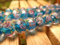 トンボ玉 (ホタルガラス) 透明なガラス内に、様々な色合いのガラスで花などの絵柄や模様を封じ込めた、昔ながらの人工ビーズが入荷致しました! 青やピンクで描かれた可愛らしい花や、キャンディのようなマーブル模様など様々なデザインのトンボ玉です! 夏にぴったりの色合いのものや、和を感じさせるデザインのもの、天珠型、チューブ型など可愛いものいっぱいです♪ デザインブレスなどのアクセントに是非!! 一味違ったブレスになりますよ。 【意味合い云われ・伝承等】 とんぼ玉は柄が入ったガラス玉で、その模様がトンボの複眼に見えたことから「とんぼ玉」と呼ばれたと云われています。 江戸時代には青地に白花模様のガラス玉を蜻蛉玉、それ以外のものは模様に応じてスジ玉や雁木玉などと呼び分けていたようです。 現在では模様に関係なく「とんぼ玉」と呼ばれており、様々な技法も生まれ、多種のとんぼ玉が生まれています。 |