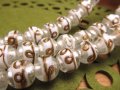 トンボ玉 (ホタルガラス) 透明なガラス内に、様々な色合いのガラスで花などの絵柄や模様を封じ込めた、昔ながらの人工ビーズが入荷致しました! 青やピンクで描かれた可愛らしい花や、キャンディのようなマーブル模様など様々なデザインのトンボ玉です! 夏にぴったりの色合いのものや、和を感じさせるデザインのもの、天珠型、チューブ型など可愛いものいっぱいです♪ デザインブレスなどのアクセントに是非!! 一味違ったブレスになりますよ。 【意味合い云われ・伝承等】 とんぼ玉は柄が入ったガラス玉で、その模様がトンボの複眼に見えたことから「とんぼ玉」と呼ばれたと云われています。 江戸時代には青地に白花模様のガラス玉を蜻蛉玉、それ以外のものは模様に応じてスジ玉や雁木玉などと呼び分けていたようです。 現在では模様に関係なく「とんぼ玉」と呼ばれており、様々な技法も生まれ、多種のとんぼ玉が生まれています。 |