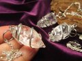 | ラフロック部 縦約23-30mm、チェーン長 約18cm、端部に7mm前後の水晶。 |