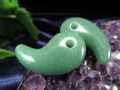 ※穴の大きさは大きいので麻紐もはいります! 日本古来のアクセサリー「勾玉(まがたま)」 三種の神器の1つでも有名な「勾玉」は、くの字に曲がったアクセサリーで、首飾りとして使われました。 魔除けや厄除け、縁結び、安産、幸運を運ぶといった効果があると考えられ、お守りとしても使用されてきました。 古代の勾玉は、単なる装飾品としての役割だけでなく、霊的な力を持つ祭具としても重要視されていました。 そのため、祈りや呪術を行う際にも使用され、神聖な存在として扱われていました。 古代日本において、人々の信仰心や精神性を表す象徴的な存在でもありました。 【意味合い・云われ・伝承等】 「リラックスの石」と呼ばれる、やわらかいエネルギーを持ちイライラや不安を抑え、ストレスを癒す効果が高いとされています。 また自律神経のバランスを整えてイラつきを抑え、冷静な判断力や集中力、記憶力を高める効果があるとも言われています。 |