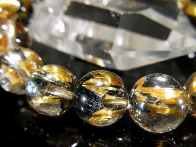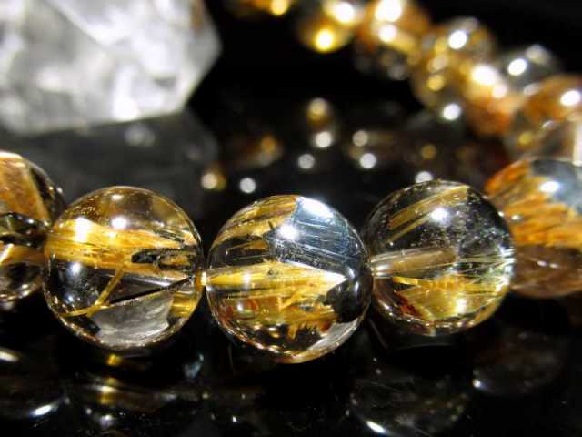 ゴールドルチル ブレスレット 透明感抜群で金針のしっかり・たっぷり入った極上S級の母岩ヘマタイト入りタイチン ゴールドルチル! 一部キャッツアイ効果が出る極上タイチンルチルです!! 透明水晶にズバッと入る太針、正にゴールドと呼べる黄金の輝きです また、ルチル結晶の母岩となるヘマタイトから結晶が伸びる根本の部分を使用した珍しいブレスレットです!! 【金運アップ・仕事運・勝負運のお守りとして人気】 ゴールドルチルはその見た目から、『金の線が入っている石』⇒『金銭が入る石』として金運・財運の象徴として重宝されてきました。 |