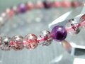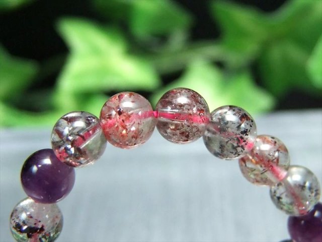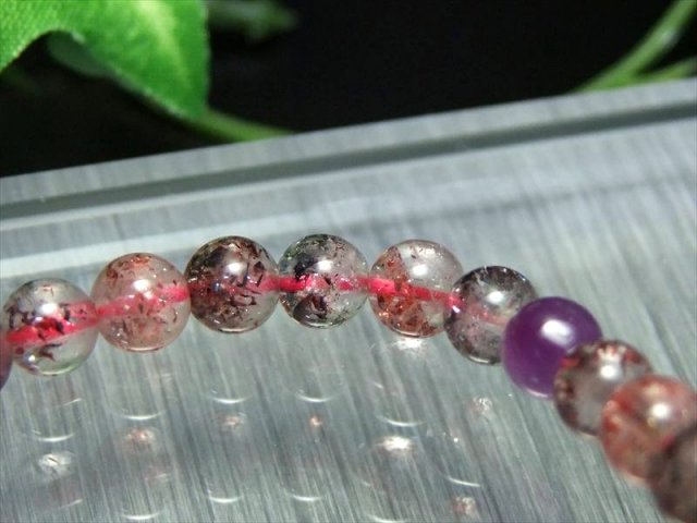 今回は超透明水晶にくっきりと鉱物が入る逸品!! ファントムに入る鉱物やアメジスト珠にも鉱物、これぞスーパーセブンと呼べるオススメの1本。 スーパーセブンとは、水晶にアメジスト・スモーキークォーツ・カコクセナイト・ルチルクオーツ・ゲーサイト・レピドクロサイトなどが内包された鉱物の通称名です。 肉眼で7種類の鉱物を全て確認できる事は非常にまれですが、7つの鉱物が内包された状態の原石をカットし、加工した石もスーパーセブンと呼ばれます。 主にゲーサイトとレピドクロサイトのどちらか、または両方により赤や紫などの色を放ち、天然とは思えないような美しさと複雑さを持った水晶・アメジストです! こちらは極上MIXタイプのスーパーセブンで、濃密なたっぷりインクルージョンと鮮やかな色みはつい見惚れる程。 |
