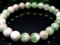 初入荷!! 世界中でもごくわずかしか採れない、グリーンガーネット(ツァボライト)とピンクゾイサイト(タンザナイト)の共生スカルンのブレスレットを入荷しました。 透明感の有る澄み切ったシトラスグリーンのガーネットと、ベビーピンク系のゾイサイトの共生でブラックライトでオレンジに蛍光する珠も確認出来ます。 スカルン(鉱物の集合体)の魅力が詰まった希少石。 ◆意味合い云われ・伝承等◆ 【グリーンガーネット(ツァボライト)】 ツァボライトはケニアのツァボ国立公園一帯で産出され、ティファニー社の当時の社長であったヘンリー・プラット卿によって「ツァボライト」と命名され、世界中に広がりました。 色や名前が示すように、森のエネルギーを取り込んでいると言われている天然石です。 人を愛する気持ちを高める力があるとされ、新しい出会いへの期待や、愛情を育てたい時に良いと云われています。 また、その力により、対人関係の円滑化や、人生を共に築いていける仲間を作ることをサポートしてくれると云われています。 【ピンクゾイサイト(ピンクタンザナイト)】 ゾイサイトの中でもこの淡いピンクを呈するタイプは非常に希少で、落ち着いた印象の中に、上品な可愛らしさを感じさせる天然石です。 ゾイサイトといえばタンザナイトが有名ですが、このピンクカラーは産出が非常に少なく、激レアな存在として注目されています。 ・恋愛運向上 ・母性を高める ・子宝のお守り ・知性や意識を高める ・慈愛の精神 |