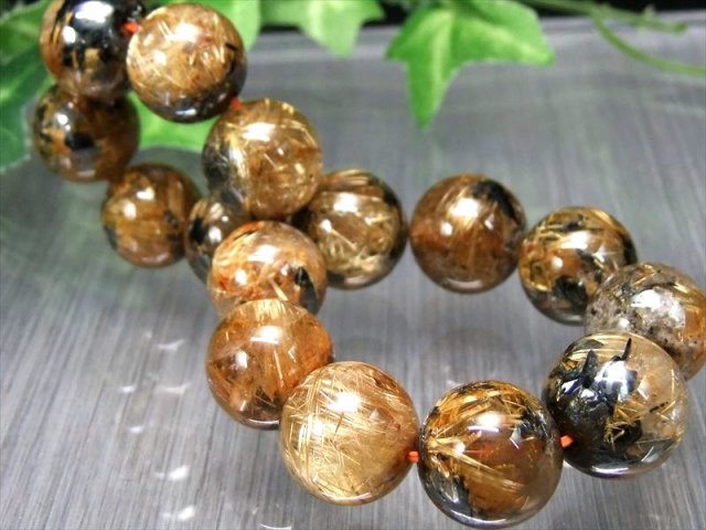 希少な母岩ヘマタイトが入ったゴールドルチルクォーツが入荷致しました! ルチル結晶の母岩となるヘマタイトから、結晶が伸びる根本の部分を使用した、贅沢なブレスレットです。 ルチルの原石の中でも、この根本の部分は量が少ないため大変希少です!! 繊細タイプの針だけでなく、希少な板状の針が入った珠もあり、中には太陽タイチンルチルが入っている珠があることも! ゴールドルチルの煌びやかな輝きだけでなく、ヘマタイトのギラギラとした鈍色光沢も綺麗ですよ♪ 少量限定のためお早めにどうぞ! 【意味合い・云われ・伝承等】 金運アップ・仕事運・勝負運のお守りとして大変人気がある石です。 ゴールドルチルはその見た目から、『金の線が入っている石』⇒『金銭が入る石』として金運・財運の象徴として重宝されてきました。 ヘマタイト入りとなると相乗効果を発揮し、母岩から延びるルチル針がアンテナのように運をキャッチして直感力や洞察力を高め、自信と決断力を与えることで、自分自身を進むべき方向へと導く効果があると云われています。 |
