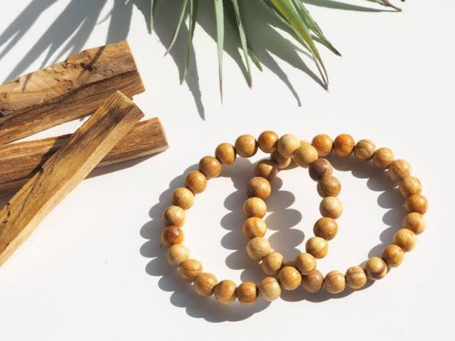 こちらはパロサントの天然木をビーズに加工してゴムを通して仕上げたブレスで、ほのかにパロサントの香りがする香木のブレスレットです。 神木であり、香木でもあるパロサントのブレスレットは、 天然石のブレスレットと重ね着けにもおすすめです。 【意味合い云われ・伝承等】 南米で神聖視される香木、「聖なる樹」と呼ばれるパロサントは、 シャーマンが儀式で炊いていたこと、木からは甘く独特の良い香りがすることから 現代ではヨガやマインドフルネスなどで炊かれることがあります。 |