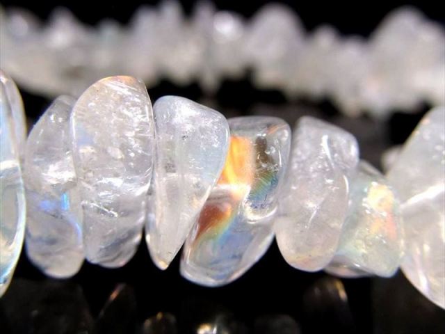 やさしい透明感とナチュラルな風合いが魅力の、レインボームーンストーンさざれブレスレットです。 天然石ならではの無垢な輝きと、角度によってふんわりと浮かび上がる幻想的なシラーが魅力的ですよ♪ 落ち着いた雰囲気でありながら、手元にさりげない華やかさを添えてくれます。 一粒一粒が異なる形状をしており、自然な味わいと個性を感じさせる仕上がりになっています。 普段使いはもちろん、癒しを求める方やスピリチュアルアイテムを取り入れたい方にもオススメです。 【意味合い・云われ・伝承等】 レインボームーンストーンは「感受性」や「直感力」を高める石といわれ、古来より月の加護を受ける神秘的な石として親しまれてきました。 内面のバランスを整え、心の奥にある不安や緊張をやさしく和らげてくれるとされています。 精神面での癒しや、自己成長をサポートしてくれるスピリチュアルな石です。 |