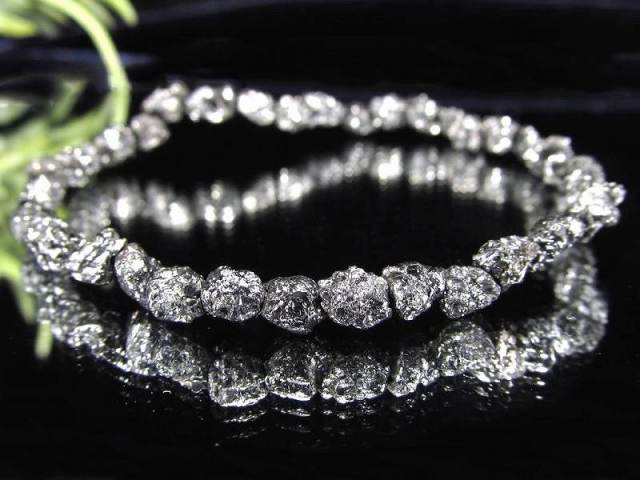 言わずと知れた宝石・半貴石の頂点に君臨する天然石ダイヤモンド。 超希少なブラックダイヤモンドの結晶原石ブレスレットを、激安価格で特別入荷しました。 派手に輝く宝石・天然石が苦手な方でも、こちらは上品に光るためコーディネートもしやすいアイテムです。 地球上の天然鉱物として最も硬いモース硬度10を誇る石で、永遠の絆を象徴します。 希少なダイヤモンドの原石を贅沢にもブレスレットに加工した大変豪華な商品です。 偽物が多く流通しているため、こちらの商品にはサンプル鑑定をしております。 キラキラと輝く、透明感もある結晶が密集した結晶集合原石で、母岩や他鉱物が付いている部分もあります。 |