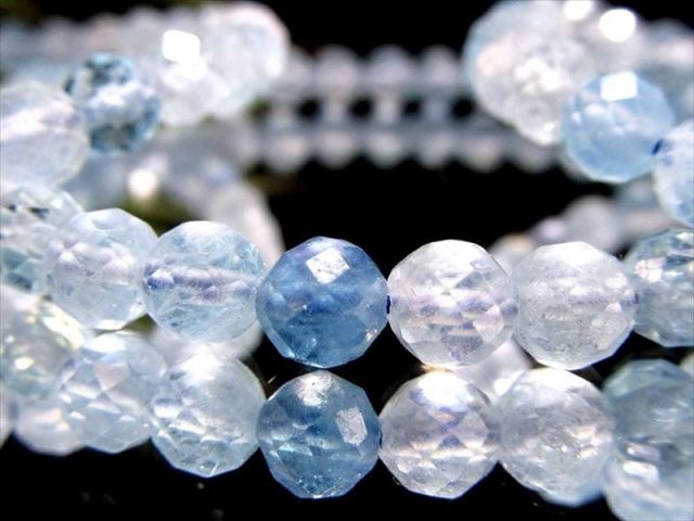 キラキラ多面カットが施されたアクアマリンブレスレットが入荷しました。 シンプルなブレスレットは、着けるシーンを選びません。 さりげなく天然石を身につけたい方に大変おすすめです。 激安価格ですので、この機会に是非どうぞ♪ 【意味合い云われ・伝承等】 アクアマリンはその昔、航海に出る船員が水難を避けるための御守りとして持っていたと云われ、ラテン語で水を意味するAquaからその名がつきました。 また『夜の宝石の女王』との美称を持ち、エメラルドと同じベリルに分類される鉱物です。 他にも『天使の石』と呼ばれ、美しい若さと幸せな喜びを象徴すると云われています。 『幸せな結婚』を象徴するとともに子宝に恵まれる石としても人気の石ですので、結婚を控えている人への贈りものとしても喜ばれます! |