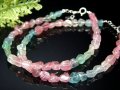 トルマリンを使用した激安ブレスレットが入荷しました!! 贅沢に希少石を使用した、オシャレなデザインブレスレットです 10月の誕生石・宝石としても知名度の高いトルマリン。 電気石という和名は熱を加えると静電気を発する特性から名付けられました。 特定の条件下でマイナスイオンを発生するともいわれ、また他に類を見ないほどに多くのカラーバリエーションが存在するのも特徴の鉱物です。 こちらはルベライト(ピンク)やヴェルデライト(グリーン)、インディゴライト(ブルー)などのさまざまなトルマリンを使用しています。 ピンク部分のトルマリンも大変濃く、透明度も高いブレスレットです。 少量限定入荷ですのでお買い逃しなく! |