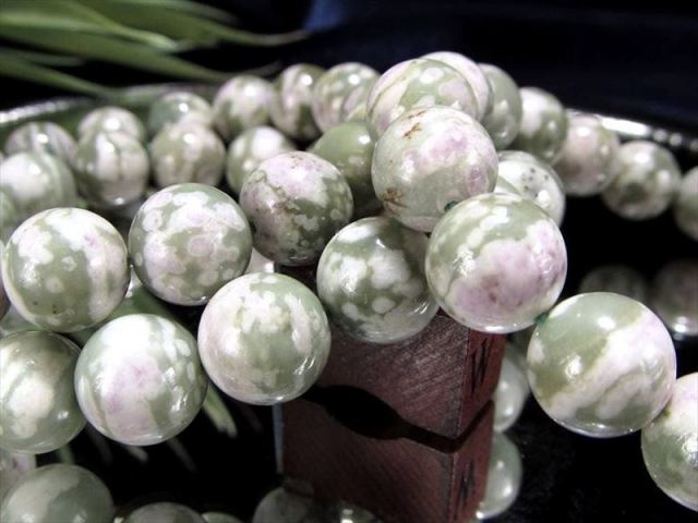 やわらかなミントグリーンに白と淡い紫が重なり合う、まるで天然の絵画のようなマーブル模様が特徴のトレモライトブレスレットです。 優しい色合いながらもしっかりと存在感があり、身に着けるだけで手元に柔らかな雰囲気と品の良さを添えてくれます。 艶やかに磨き上げられた珠は光を受けて上品に輝き、天然ならではの模様の個性をより一層引き立てています。 トレモライトは鉄の含有量が10%以下のときに分類される鉱物で、それ以上になると「アクチノライト」と呼ばれます。 今回のブレスは成分分析により、しっかりと【トレモライト】であることが確認済みです。 また、この鉱物は中国ではしばしば「和田翡翠(ネフライト)」と混同されることがありますが、当店では正しく鑑別を行い、間違いのない石種のみをお届けしております。 安心してお迎えいただけます。 世界的にも流通量が少なく、美しい模様が揃う原石は近年特に入手が難しくなっているため、コレクションとしてもオススメできる一本です。 トレモライト(透閃石)は古くから“心身のエネルギーを整える石”として知られ、ストレス吸収・感情の安定・浄化など、日々の心を整えるサポートストーンとしても愛されています。 やわらかな色合いの癒しと、希少鉱物ならではの存在感を兼ね備えた一本。 身につけることで、心に安らぎと調和をもたらしてくれるような、非常に魅力的なブレスレットです。 【意味合い・云われ・伝承等】 安心感と安定を与える 心を落ち着け、精神的な強さを養う エネルギーバランスを整え、調和をもたらす 少量限定のお買い得商品ですのでお買い逃がしなく! |