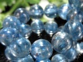 透明青色と淡い緑色の結晶が幾重にも重なった、ブルーのストライプが美しいカイヤナイトブレスレットです! 超透明を感じられる極上品です! 中にはつやつや美シラー入りの珠も! 非常に希少価値が高いですよ! この機会をお見逃しなく! 【意味合い云われ・伝承等】 意志を明確にし、迷いを取り去る 古い思考パターンを断ち切る |