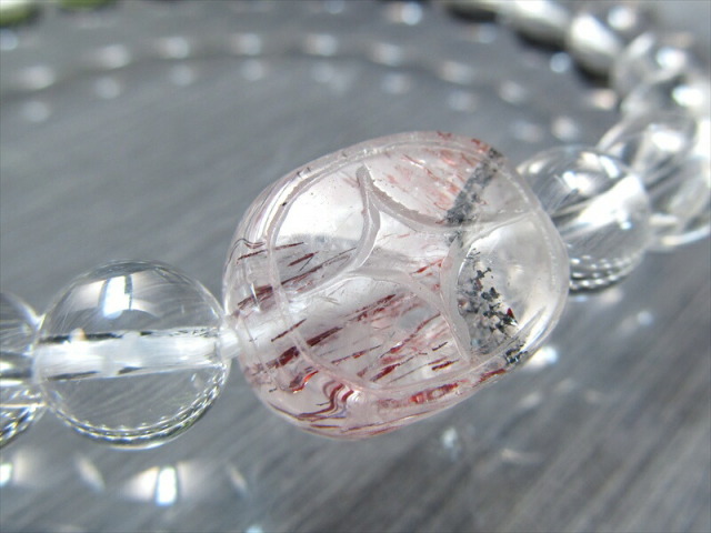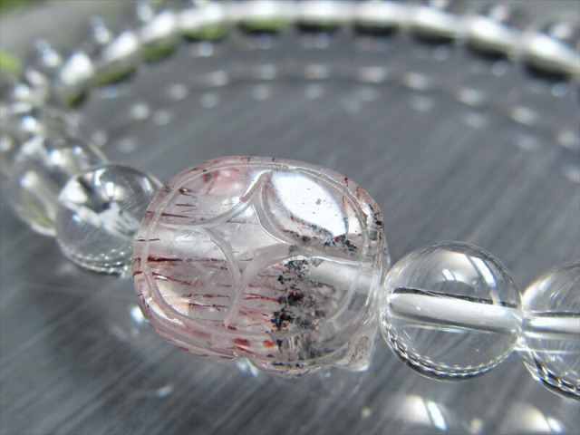 スーパーセブン ヒキュウ 長さ約13ミリ×幅15ミリ、厚み12ミリ 水晶珠 約8mm前後×23珠、手首回り17cm 手首回りピッタリに直せます!お買い上げ後コメント欄にて手首回りをお知らせください。(増やす場合はご相談ください) |