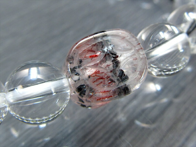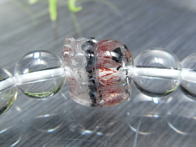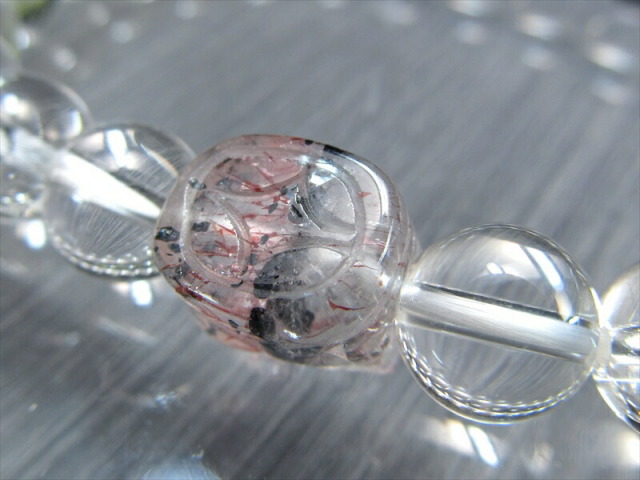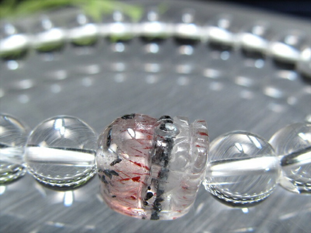 透明感のあるスーパーセブンを細密に彫り上げたヒキュウと 全てを浄化し活性化させる万能ストーンな水晶を組み合わせたブレスレットが数量限定で入荷しました。 内包物がバランスよく入っており非常に美しいタイプのスーパーセブンです。 濃厚な赤みとキラキラとした輝きは、華やかさ一押しです。 スーパーセブンとは、水晶にアメジスト・スモーキークォーツ・カコクセナイト・ルチルクオーツ・ゲーサイト・レピドクロサイトなどが内包された鉱物の通称名です。 肉眼で7種類の鉱物を全て確認できる事は非常にまれですが、7つの鉱物が内包された状態の原石をカットし、加工した石もスーパーセブンと呼ばれます。 様々なインクルージョンと共に産出する水晶ですが、スーパーセブンは最も有名で不動の人気を誇る水晶です。 【貔貅ヒキュウとは】 金銀などの財宝を主食とする中国神話の神獣で、財運アップに絶大な効果を持つとされています。 中国では「一回触ると運勢アップ(運程旺盛)、二回触ると財運アップ(財源滾滾)、三回触ると出世する(平歩青云)」と言われ、特に商売人には大切に扱われているそうです。 【意味合い・云われ・伝承等】 スーパーセブンは、インクルージョンされているそれぞれの鉱物がお互いのパワーを補い、増幅し合っているので、とても強いパワーを発揮するとされています。 スーパーセブンは「メロディーストーン」とも呼ばれ、7つの異なる鉱物が結晶内に含まれています。 これらの鉱物には、パワフルなスピリチュアルな特性があるとされ、精神的な成長や洞察を促進し、ヒーリングとバランスをもたらすと云われています。 エネルギーヒーリングや瞑想に使用され、ストレスの軽減や内面の平和を促進することが期待されています。また、浄化が不要であり、最も力強いパワーストーンの一つとして認識されています。 |