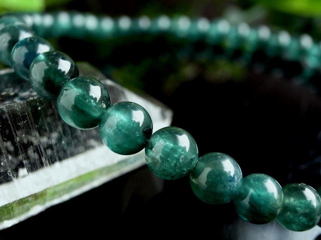 トルマリンの中でもレアカラー!!インディゴライト(ブルートルマリン)を使用したブレスレットが入荷しました! 青に緑が混ざり合ったような、深みのある色合いはインディゴブルーそのものです。 10月の誕生石・宝石としても知名度の高いトルマリン。 電気石という和名は熱を加えると静電気を発する特性から名付けられました。 特定の条件下でマイナスイオンを発生するともいわれ、また他に類を見ないほどに多くのカラーバリエーションが存在するのも特徴の鉱物です。 深い青色が印象的なインディゴライトは、心を落ち着けて平穏な日々を送るサポートをしてくれます。 それと同時に、人間関係を良好にもしてくれる天然石です。 インディゴライトを身に着ける事で信頼できる相手を見つけ、安定した人間関係を築くきっかけを与えてくれることでしょう。 |