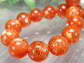 ※まさに愛でる太陽!! このサイズでこの美しさは激レア。 太陽の様にエネルギッシュなキラキラ輝くアベンチュレッセンス、透明感も抜群。 バイヤーお気に入りの逸品です。 濃密なオレンジカラーにキラキラ輝くアベンチュレッセンスと華やかなシラーが美しい、サンストーン【日長石】ブレスレットが入荷しました。 太陽神の象徴とされるサンストーンは、ポジティブなエネルギーと活力をもたらすといわれ、持ち主に自信と幸福感を与えるパワーストーンとして人気があります。 アベンチュレッセンスによるキラキラした輝きと、華やかに光を反射するシラー効果が織りなす美しさは、見る角度によって表情を変える、まさに自然が生み出した芸術です。 濃密なオレンジカラーは、太陽のように明るく温かいエネルギーを放ち、ポジティブな気持ちを引き出すといわれています。 おすすめ品質のインド産サンストーンを、ぜひこの機会にお試しください。 限定入荷ですので、お早めにどうぞ! 【意味合い云われ・伝承等】 サンストーンにはギリシャ語で「ヘリオライト」という別名があります。 太陽信仰が盛んだった古代ギリシャでは、サンストーンは太陽神の象徴として崇められていたといいます。 サンストーンは、【太陽の石】と呼ばれ、自信の無い人やコンプレックスの強い人に対して、冷えた心を太陽の光が温めてくれるように、自信を取り戻す為に働くと云われています。 また、心に余裕をつくり、さらに人生に対する創造性を高め、前向きに人生を楽しむ事を教えてくれるとも云われています。 |