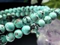 中国・湖北省で産出されるフーベイターコイズを使用したブレスレットが入荷しました。 濃淡のあるミントグリーン系の色合いや、自然に現れた斑点・網目状の模様が一珠一珠異なり、素朴で味わい深い表情を見せてくれます。 高品質グレードと比べると発色や緻密さは控えめですが、その分、ターコイズらしい自然感やラフな雰囲気を楽しめるのが魅力です。 日常使いや重ね着け、カジュアルなコーディネートのアクセントとしても取り入れやすく、初めてターコイズを試したい方にもオススメです。 12月の誕生石として知られるターコイズは、古くからお守り石として親しまれてきました。 手に取りやすい価格帯ですので、普段使い用や気軽なお守りとしてぜひお楽しみください。 【意味合い・云われ・伝承等】 ・12月の誕生石 ・友情を強める ・旅のお守り ・邪気払い ・積極性をもたらす |