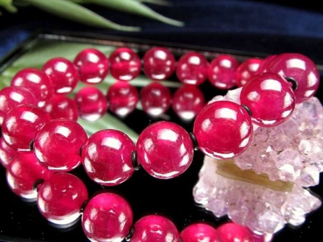 ルビー ブレスレット 最高級グレード 宝石質ルビーブレスレットが入荷致しました。 宝石質ルビーは原石の産出量が限られており、大粒に加工することが難しい為大変貴重となります。 このサイズで、この透明度は激レア入荷です、色味も王道の濃い赤。 妖艶な透明感と鮮烈な赤を併せ持つ宝石質ルビーを贅沢に使用しながら、 高級感と手に取りやすさを兼ね備えた、まさに見逃せない一本です。 ルビーといえば宝石の代表格で、天然石ブレスとしても非常に高い人気を誇っております! 7月の誕生石、勝利の石!として人気が高く、ミャンマー産の最高級品です。 【意味合い・云われ・伝承等】 ・7月の誕生石 ・勝利と情熱の象徴 ・恋愛における積極性を高める |