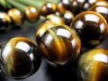激レアツートンタイガーアイブレスレットの入荷です。 ゴールデンタイガーアイとブルータイガーアイのツートンカラー。 石の表面の研磨も美しく、つやつやでとても美しい光沢です。 虎の眼のようなシャトヤンシー効果もみられます。 【意味合い・云われ・伝承等】 古代エジプトでは、神々の像の目にタイガーアイを使ったといわれています。 強い輝きを放ち、見る角度によって光彩が変化する様子から、すべてを見通す心眼に通じると考えられていたようです。 頑張る人をサポートし圧倒的な行動力を授けてくれ、必ず目的達成でき、大きな成功へ導いてくれると言われています。 また、『お金がたまる石』『幸運を招く聖なる石』といわれます。 |