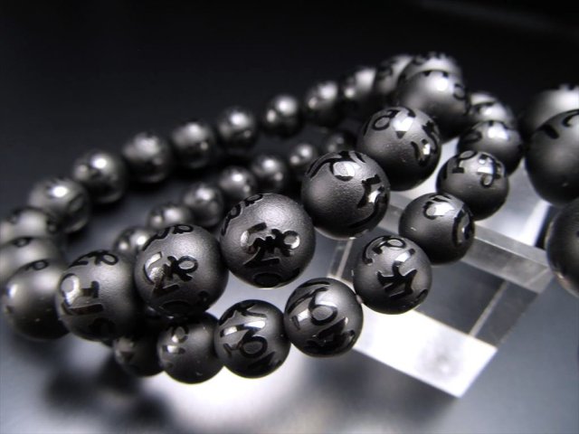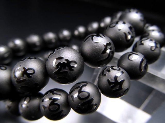 ブラックオニキス ブレスレット 古くから魔よけの護符として使用されてきたオニキスと、六字真言が組み合わさったブレスレットです! オニキスにはフロスト加工が施され、そこに六字真言が浮き彫りのように磨かれています。 【六字真言とは】 六字真言とは、“病気・苦痛・刑罰と恐怖が消え幸運が訪れ、寿命が延び、財産が増える”という意味合いがあり、観世音菩薩の慈悲を表現した真言です。 【意味合い云われ・伝承等】 オニキスは自分自身の中心軸をしっかりと安定させる石で、着実に目標を実現するために地に足を着けた行動をするよう導いてくれる石です。 また、成功の象徴や夫婦の幸福、安定といった意味合いもあり、そこに六字真言が組み合わさることで、意味合いが強化されたお品です♪ |