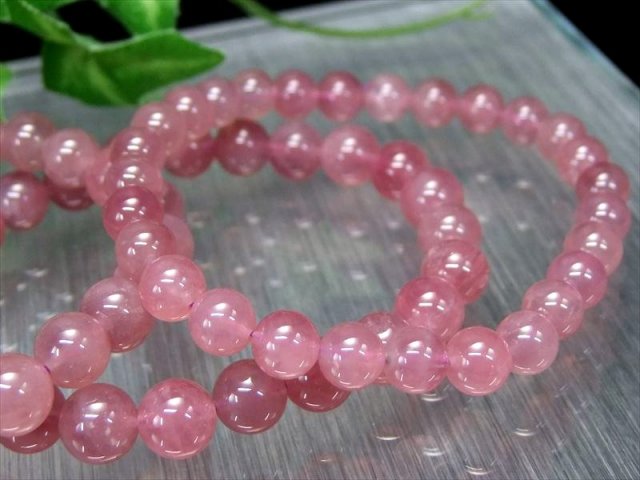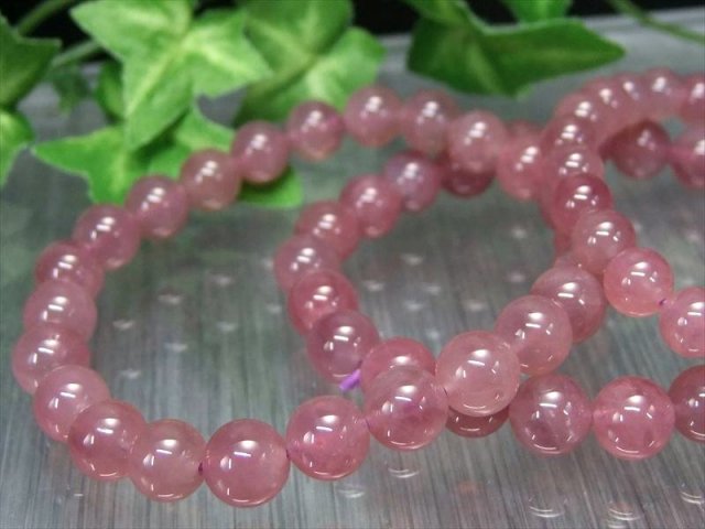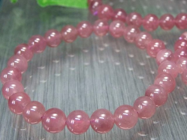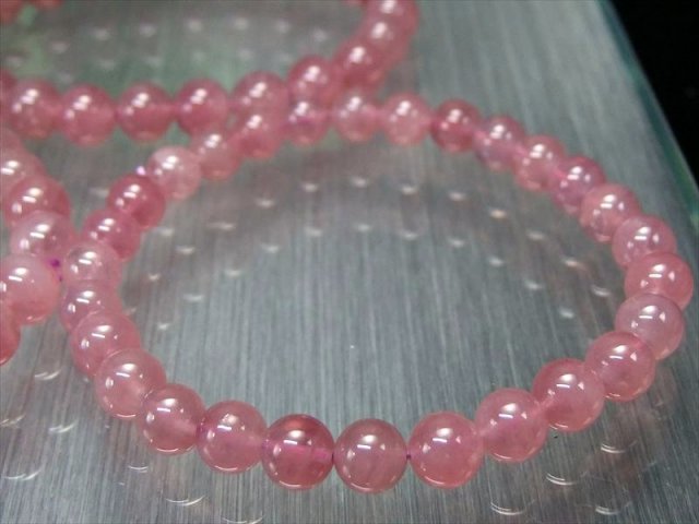 ラズベリークォーツ ブレスレット ローズクォーツでありながら、薄っすらと紫色をおびた濃厚ピンクのラズベリークォーツです。 一般的に流通しているローズクォーツは淡いパステルピンクですが、こちらは大変オススメの希少カラーです。 若干紫がかった落ち着きのあるピンクの、可愛らしいブレスレットです。 今にも果汁が滴るような、潤いのある艶光沢と透明感があります。 しかもこちらはマダガスカル産のスターローズクォーツの一種で、スター効果も。 様々な色味の存在するローズクォーツで |