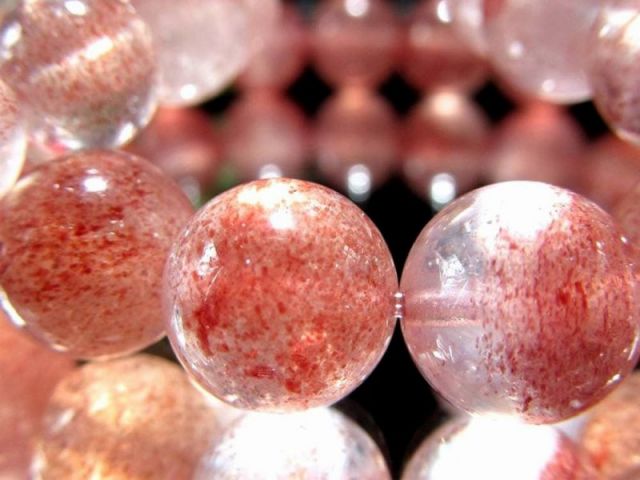 モスコバイトインクォーツ(雲母入り水晶)ブレスレット 透明感のある水晶に、果肉感のあるつぶつぶした結晶【モスコバイト】を内包したブレスレットです! モスコバイトは和名を白雲母(しろうんも)と言い、本来は無色や白色っぽい色合いをしています。 しかし、この「白雲母」に「マンガン」が含まれることによってその色合いは赤茶色へと変化します。 赤色結晶が入り込むことで、水晶がほんのりとピンク色を帯び、まるで苺の様な可愛らしい見ためになっています。 【意味合い云われ・伝承等】 「モスコバイト」という名前は、この石をヨーロッパへ運ぶ際にモスクワを経由して運んだという歴史に関係があるそうです。 その当時、雲母は断熱性に優れたミルフィーユ状の薄い層を持っているため窓ガラスなどの素材として愛用されていたそうです。 この時の呼び名が「モスクワガラス」。現在の「モスコバイト」の名前の由来となりました。 |