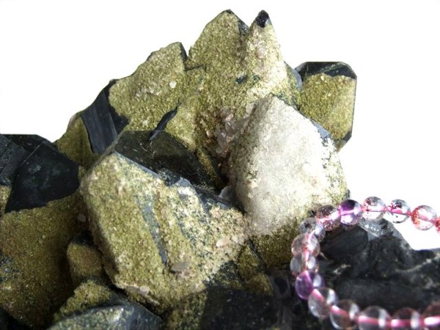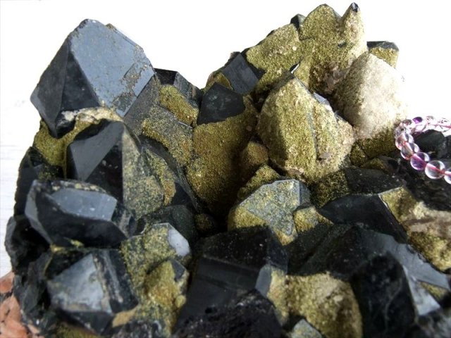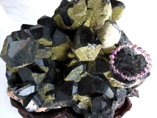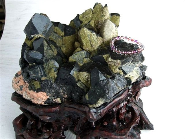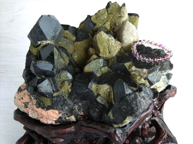 完全1点物、天然非照射の漆黒のモリオンクラスターが入荷しました! 迫力の特大サイズ!! ブレスレットの浄化や家屋全体の厄除け浄化が出来るパワーを感じますよ。 こちらのモリオンは緑簾石(エピドート)の苔色と相まって盆栽の様な癒しを感じて鑑賞できます、人工的な処理等は一切行っていない自然のままのクラスターです。 山東省は、世界的な黒水晶の産地であり、非常に人気も高く有名です。 モリオンは原石やビーズ、ペンダントトップと、形状を問わず常時人気がある定番マスト商品です。 原石ならではのポイント同士の結晶化や、グラデーションになった色合いなど、加工された黒水晶では見られない魅力が詰まっています。 重厚な雰囲気と鉱物らしい無骨さを併せ持ち、お部屋に置くだけで圧倒的な存在感を放ちます。 【意味合い・云われ・伝承等】 最強の魔除け・邪気払いの石 モリオンは数ある石の中でも最も強力な邪気払い、魔除けの石の一つといわれています。 ・強力な邪気払い ・浄化作用 ・精神の安定 数量限定ですのでお早めに! |