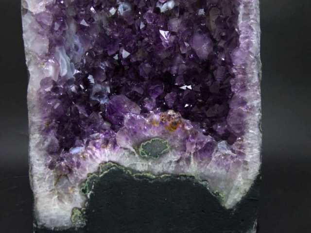 世界有数のアメジストの産地、ブラジル リオグランデ・ド・スル州のアメジストドーム(カペーラ)入荷です!! 天然石ショップで一番目を惹くといっても過言ではないほど迫力があり、天然石をあまり知らない人でも一度は見たことがある方が多いアメジストドームです!! 天然石商品の中でも印象的で、人気の品です!! 結晶の透明感、紫色の濃さ、ツヤも上質の極上品です!! ブレスレット等が浄化出来る奥行もあり、全体のシルエットはバランスの取れた形となっています。 見るからに強いパワーを感じますよ 【意味合い・云われ・伝承等】 2月の誕生石として有名なアメジスト。 深く美しい紫色は、『最も高貴な輝きを放つ石』として多くの人に愛用されてきました。 アメジストや水晶は空洞内に溜まったケイ酸を含む熱水が徐々に冷えていく過程で結晶化するといわれています。 そのため空洞の内側に結晶がたくさん付いており、神秘的で迫力の姿になります。 その姿は多くの人を魅了する力を秘めています。 【アメジストドームについて】 アメジストドームは主に金運・財運の上昇、人間関係の向上という効果があります。 もともとアメジストの持っているヒーリング効果や直感力を高めるパワーがドーム形状を持つことによってより高められ、ワンランク上の自分にステップアップできるとされています。 【メノウ付きアメジスト】 綺麗な紫色のアメジストに、マーブル柄のメノウが乗っています。 現物撮影の一点もの商品です。 ※梱包には万全を期しますが、商品の特性上、配達時に少々かけることがあります。 ※大きさの比較の為、8mm前後ブレスレットを使用しています、浄化時の参考にしてください。(ブレスレットは付属しません。) ※出来る限り自然な色みになるよう撮影を心がけておりますが、お使いのディスプレイ環境によって表示される色みに差が出る場合があります。 ご了承ください。 天然石ですので多少の傷、クラックはあります。宜しくお願い致します。 最後にあなたに幸福が訪れますように。 |