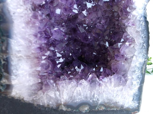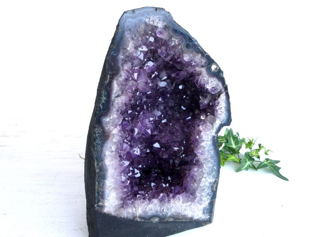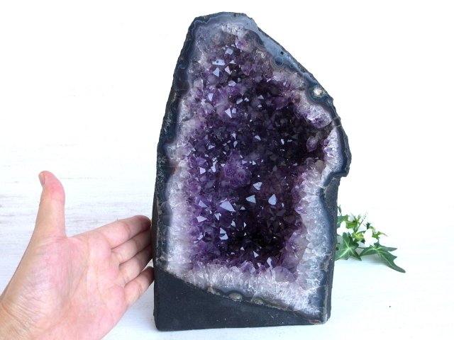アメジスト ドーム アメジストが産出される地域として有名なブラジル産のアメジストドームが限定入荷しました! 結晶の透明度・照り・大きさ全てが最高品質のアメジストカペーラです! ブレスレット等が浄化出来る奥行もあり、全体のシルエットはバランスの取れた形となっています。 見るからに強いパワーを感じますよ さらにこちらはブラックライトを当てる事で蛍光ピンクに発光する、ピンクカルサイト共生のアメジストドームです! ピンクカルサイトは「聖母マリア様の慈愛を宿した石」といわれ、心の痛みや悲しみから解放し、トラウマや精神的ストレスを癒してくれます。 【意味合い・云われ・伝承等】 2月の誕生石として有名なアメジスト。 深く美しい紫色は、『最も高貴な輝きを放つ石』として多くの人に愛用されてきました。 アメジストや水晶は空洞内に溜まったケイ酸を含む熱水が徐々に冷えていく過程で結晶化するといわれています。 そのため空洞の内側に結晶がたくさん付いており、神秘的で迫力の姿になります。 その姿は多くの人を魅了する力を秘めています。 【アメジストドームについて】 アメジストドームは主に金運・財運の上昇、人間関係の向上という効果があります。 もともとアメジストの持っているヒーリング効果や直感力を高めるパワーがドーム形状を持つことによって高められ、ワンランク上の自分にステップアップできるとされています。 現物撮影の一点もの商品です。お買い逃がしなく! |