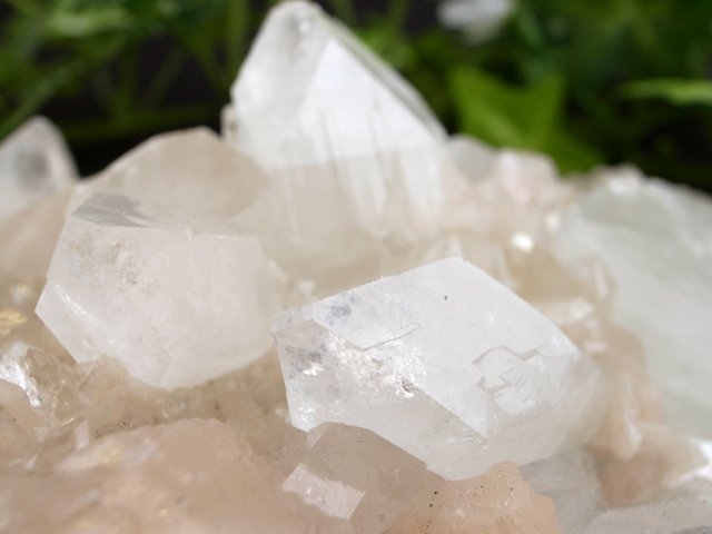 一見水晶のようなクラスターで産出するアポフィライト。 しかし水晶よりも輝きが強く、さらに同じグループの鉱物であるスティルバイトやヒューランダイトなどと共に多彩な結晶で産出する、天然石の魅力をたっぷりと感じられる鉱物です♪ 和名の魚眼石というのはその輝き方が魚眼に似ていることからきており、特殊な輝きは他鉱物には無い神秘的な魅力があります! またアポフィライトは強力な浄化の石と云われ、天然石アクセサリーの浄化のみならず、空間浄化にもおススメです♪ スティルバイトやヒューランダイトは特殊な形状で産出し、花が咲いたように広がった形状は天然とは思えない美しさです♪ 上質な品のみの厳選にも関わらず低価格での販売です!! 【ゼオライトグループの石】 ・アポフィライト・グリーンアポフィライト 透明・またはグリーンで産出する石で、独自の輝きと四角錐や四角柱状の結晶が特徴。 特にグリーンアポフィライトは希少で、中でも四角ではなく尖った結晶はさらに希少。 透明な物は微細な結晶が集まったドゥルージー状で産出することもあり、大きな結晶はダブルポイント状で産出することもある。 ・スティルバイト オレンジや白い結晶で、アポフィライトと共に産出することが多い。 薄い板状の結晶が幾重にも集まった形状で、先端は緩く尖っている。 ・ヒューランダイト 透明・薄ピンク・オレンジ色などで産出し、薄い板状の結晶が幾重にも集まった形状。 横から見ると菱形の結晶で、スティルバイトと似ているが先端は鋭角に尖っている。 【意味合い云われ・伝承等】 アポフィライトは、心の目、第三の目を開くとされており、直感力や洞察力、霊力を授ける石とされています。 問題解決の手助けをするヒーリングやカウンセリングによく使われることがあります。 強力な浄化作用があり、ストレスを軽減し、精神的な閉塞感や否定的な思考パターンを解放してくれると言われています。 |