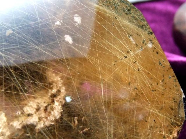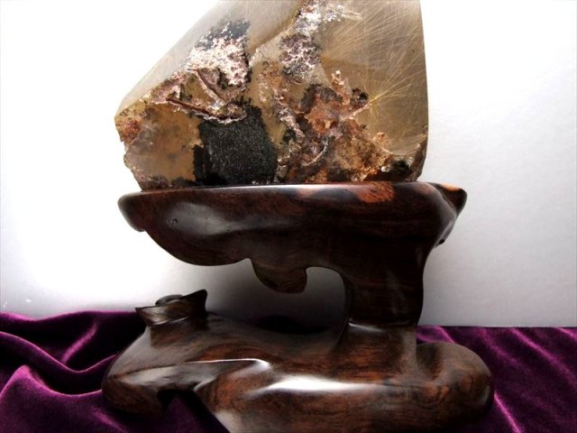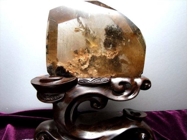 ガーデンの山脈からの御来光の様にルチルが輝いています。中心部に放射状に伸びるスタールチルと周囲に縦横無尽に走る金針は、富士山からの初日の出、湖面に乱反射する太陽光を連想してしまいました!! 買い付け時に、正に奇跡の逸品、何故か拝みたいと思ってしまったほどです。 2020年の開運ストーンは、コレで決まりですね。 台座も別注で作成した高級木製台座です、元宝をモチーフに装飾した、透かし彫りの逸品です。 パワーストーンの中でもトップクラスに知名度と人気のあるゴールドルチルクォーツ。 ブレスレットが最も一般的ですが、こちらは激レアのクラスターでの入荷です!! 透明度の高い水晶の中にゴールドルチルと鮮やかな色身のガーデンが入った美しい反面磨きの原石です! 有名な存在ながらなかなか原石では流通しないゴールドルチル原石、お買い逃しなく!! |