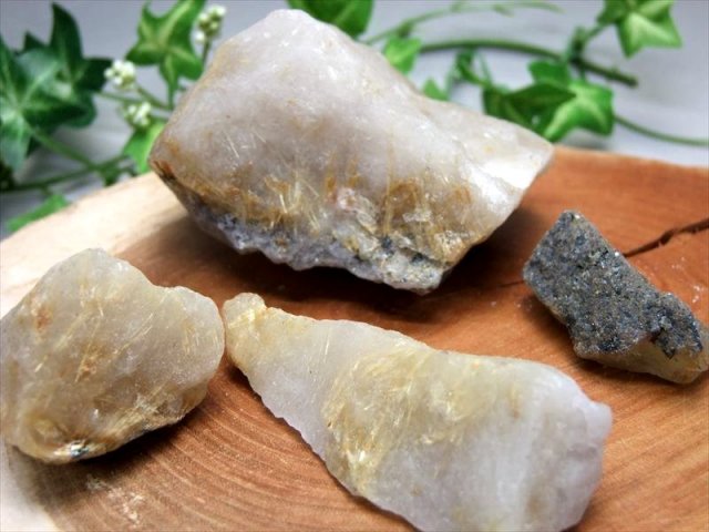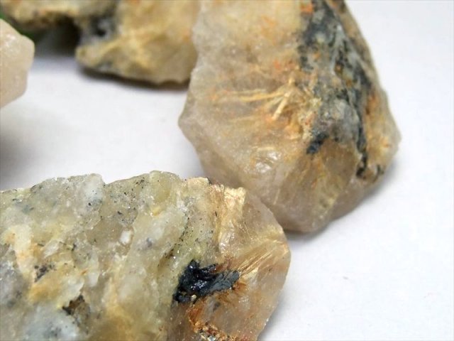 ゴールドルチル入り水晶原石 ブレスレットで人気・メジャーなゴールドルチルクォーツの原石が少量入荷いたしました!! 魔除けの意味合いのあるスモーキークォーツにゴールドルチルが入るタイプや黒いヘマタイトとルチルの結晶が剥き出しになったものなど様々です。 金運などの意味あいやその輝きから人気のゴールドルチルの原石です! ルチルというのは二酸化チタンの針状鉱物の総称で、これが水晶内に入っているとルチルクォーツと呼ばれます。 いまや知名度の高いゴールドルチルクォーツですが、原石はまだまだ流通量が少ない状態です。 シルバーワイヤーを用いたアクセサリー作成にもおススメの原石パックです! |
