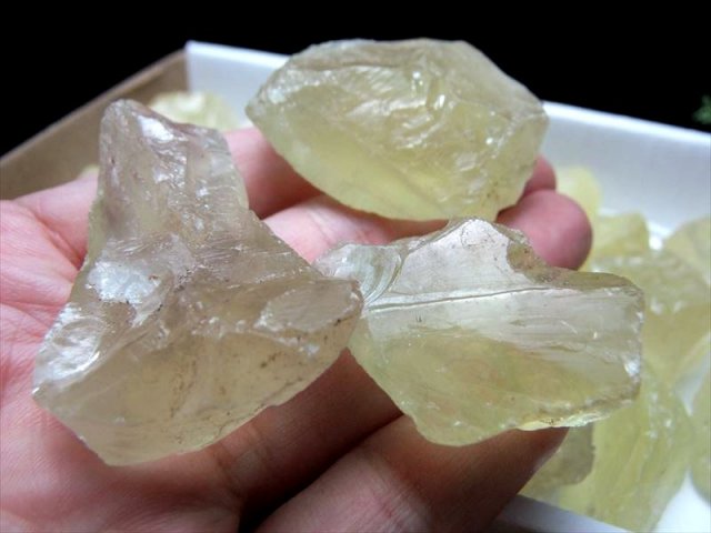 極上レモンクォーツ【硫黄水晶】ラフ原石タイプ ※画像にありますそのまま届きます、蓋はありません、ラップの様な透明ビニールに包んだ状態です。 透明感のあるレモンクォーツ【硫黄水晶】ラフ原石タイプの詰合せが数量限定入荷いたしました! レモンクォーツは水晶の一種で、透明度が高くレモンのような瑞々しい黄色が爽やかなパワーストーンです。 同じ黄色の水晶ということで、シトリン(黄水晶)と同一視されることが多いのですが、シトリンは内部に鉄分を含むことで黄色にエンハンスするのに対し レモンクォーツの黄色の素は、結晶の生成過程で内部に硫黄成分が入ったことによります。 ナチュラルな雰囲気のアクセサリーに加工したり、普通の水晶サザレ石と混ぜたりしてもオススメです |