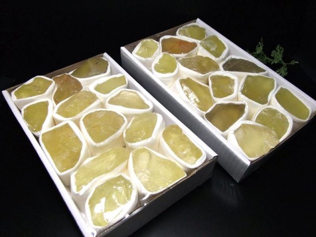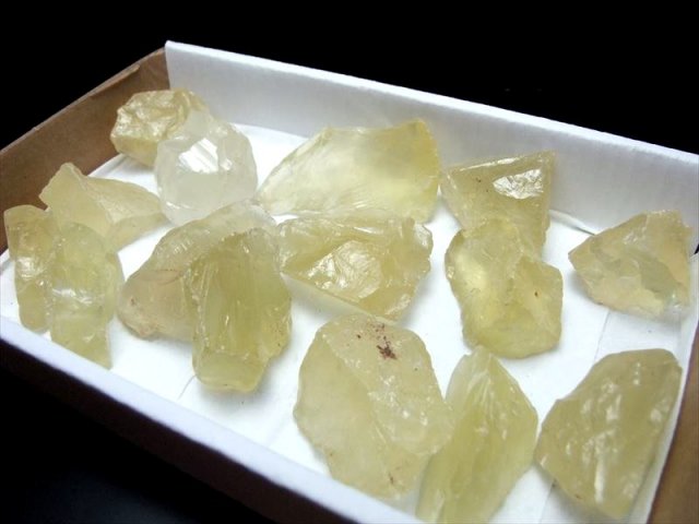 | 1箱の箱を含む重さ 約300-500g、原石サイズ約30mm-60mmの物が13個から17個入り。 |