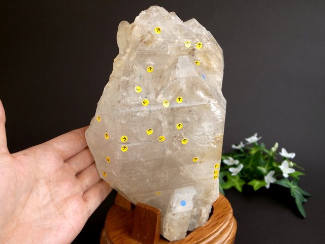 神秘的で力強いエネルギーを放つ、特別な原石 こちらは、スモーキークォーツの美しい原石です。 中級者~上級者のコレクターの方にもお喜びいただける、希少性の高い特徴をいくつも備えた逸品をご紹介します。 この原石の特徴 【エレスチャルクォーツ】 「天使の棲む石」とも呼ばれるエレスチャルクォーツは、結晶の頂点に小さな結晶が集合して成長した形状が特徴です。一つ一つの結晶が個性を持ち、繊細でありながらも、高い浄化力と強力なエネルギーを宿していると言われています。その芸術的な佇まいは、見ているだけで心が洗われるような美しさです。 【たくさんの水入り水晶 (ウォーターインクォーツ)】 結晶内部に「水」や「気泡」を閉じ込めた、大変珍しい水入り水晶です。光に透かすと、太古の水がきらめく様子を観察することができます。この水は何万年も前のものと考えられており、地球の記憶を封じた「タイムカプセル」とも喩えられます。その揺らぐ姿は、唯一無二の趣を感じさせます。 【レコードキーパー】 結晶表面に三角形の「▽」の刻印がくっきりと浮かび上がっています。この模様は「レコードキーパー」と呼ばれ、古代の知恵や情報が記録されていると言われる大変パワフルな印です。瞑想時にこの印に触れることで、深い叡智やインスピレーションを受け取る手助けをしてくれるでしょう。 【ワニ水晶 (アリゲータークォーツ)】 結晶表面にごつごつとした凹凸やざらつきがあり、ワニの肌のようなユニークな質感を持つことから「ワニ水晶」とも呼ばれます。これは成長過程での急激な温度変化により形成されたもので、非常に力強い大地のエネルギーを秘めています。 「まとめ」 この一台には、 ・ エレスチャルの繊細なエネルギー ・ 水入りの持つ浄化と癒やし ・ レコードキーパーの知恵とインスピレーション ・ ワニ水晶の強力なパワー という、4つの魅力が凝縮されています。 「ご利用方法」 ・パワーストーンとして、瞑想やヒーリングにお役立てください。 ・お部屋やお店のインテリアとして、スペースを浄化し、気高いエネルギーで満たします。 ・天然石コレクションとして、じっくりと観察し、その個性を楽しむことができます。 ・大切な方への贈り物としても、非常に喜ばれます。 自然が生み出した造形美と強力なエネルギーを、ぜひその手でお確かめください。 |
