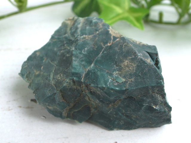 希少な国産原石・出雲石の1点物が入荷しました! 深い緑が美しい高品質タイプです。コレクターの方はお早めに! 宍道湖の南岸の松江市玉湯町付近は古くは旧石器時代より開けていた地域で、現在でもさまざまな遺跡が残っています。 玉湯町の近くには、「碧玉(へきぎょく)」と呼ばれる青メノウや赤・白のメノウが豊富に採掘された花仙山(かせんざん)があり、その麓には玉作りを営む集落が数十か所も存在したと言われています。 花仙山の青メノウは、天皇が持つ三種の神器の1つである八坂瓊勾玉(やさかにのまがたま)の原料となったと伝えられています。 その為、日本人であれば花仙山の青メノウ(出雲石)は特別な意味を持つことになります。 日本書紀にも「岩戸隠れの際に後に 玉造連の祖神となる玉祖命が作り、八咫鏡とともに太玉命が捧げ持つ榊の木に掛けられた」とあり、とくに大国主命と密接な関わりをもち、国譲りの際に大国主自ら身代わりの品として天孫に献上したと伝えられています。 【出雲石】 古事記や日本書紀でも登場する「出雲」。 三種の神器のひとつ八尺瓊勾玉は、出雲碧玉でできているともいわれています。 八尺瓊勾玉は、現存するにも関わらず、天皇家、現在も過去も誰も見た者がなく、文献も残っていません。 八尺瓊勾玉の「瓊」の字は「肅」を意味し、「赤い碧玉製なのではないか?」といわれています。 大和王権があったと言い伝えられる奈良では、古墳時代の遺跡から、この出雲碧玉が多く出きれています。 日本では碧玉の産地はいくつかありますが、太古の昔から樹の象徴として所有されていたほど良質だったことが伺えます。 |