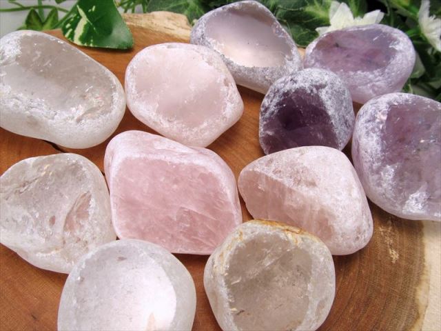 一面カット原石 ウィンドウクォーツ 川流れ水晶(リバークリスタル)と呼ばれるころりとした天然石が入荷しました! 大人気の天然水晶・アメジスト・ローズクォーツの3種類からお選びいただけます ウィンドウクォーツの表面はサンドブラスト加工を施したような、少しザラザラとした手触りが残る曇りガラスのようになっています。 水晶の中が覗けるようにカットされた面があり、中の虹が見れる原石もあります 【ウィンドウクォーツ】 すべてにおいて浄化・ヒーリング効果の強い石です。 その形状や結晶構造によって、それぞれ個性や効果があると言われています。 【天然水晶】 水晶(クォーツ)は世界中の人に愛され、伝統的につかわれてきた、パワーストーンを語る上で欠かせない石です。 その抜群の浄化作用から「万能の石」と呼ばれ、他のパワーストーンを浄化する際に利用されています。 【ローズクォーツ】 ローズクォーツの名の由来は、愛と美の女神アフロディーテに捧げられたバラから命名されています。 代表的な恋愛運のパワーストーンという云われから女性に大変人気があります。 【アメジスト】 アメジストは真実の愛を教えてくれるといった石言葉を持ち、また2月の誕生石としても有名で非常に人気の高い水晶です。 黄色い水晶のシトリンと混ざった、アメトリンや淡いラベンダー系カラーもあります! 次回入荷は未定ですのでお早めに!! |