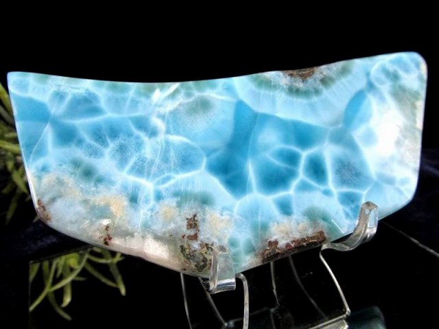 希少なラリマー原石のスライスプレートが登場しました。 ラリマー最大の魅力である、美しい水面模様が表面にしっかりと浮かび上がった、激レアな逸品です。 ブルーペクトライトの別名を持つラリマーは、カリブ海周辺で産出され、その独特な美しさは、見る人をうっとりさせます。 両面にしっかりと水面模様が浮かび、断面や側面もポリッシュされ、手触りも滑らかで心地よいです。 ラリマーは、その希少性からアクセサリー用に加工されることが多く、原石ではなかなか流通しません。 ラリマーアクセサリーは持っていても、原石を見たことが無い方も多いほど、流通が少ない天然石です。 そのまま観賞用としても、また加工の材料としてお使いいただけます。 【意味合い・云われ・伝承等】 ラリマーはスギライトやチャロアイトと共に世界三大ヒーリングストーンとされ、「癒し」に優れたパワーを発揮すると云われています。 愛と平和を表す鉱物とされ、心の奥に隠された怒りの感情を鎮め、自己の間違った観念の束縛から解放されるよう力を与えてくれると云われています。 |