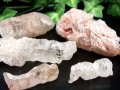 【蝕像水晶(エッチドクォーツ)】 希少なピンクカラーのアイスクリスタル(エッチドクォーツ)が入荷しました。 地中の温度や圧力の変化、フッ化水素を含んだ熱水の浸蝕等により水晶が溶解されることで、表面に蝕像ができたり、その後の再結晶も伴って独特の複雑な形状が造られた特殊形状水晶です。 凸凹とした面や大きな窪み、ギザギザとした面など、エッチングの度合いにより、ざらざらとした表面ですりガラス状になっている物や、ロッククリスタルのような透明なものなど、様々な形状、見た目の結晶になっています。 同じものがこの世に二つとない、大自然が生み出した神秘的な結晶。 天然石玄人、コレクターの方も一つは押さえておきたい天然石です。 |