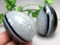 アイアゲート(瑪瑙)エッグ置物、笑口の様に黒瑪瑙や天眼瑪瑙と水晶の部分がバランス良い物だけを厳選入荷。 天眼メノウは古くより、目のような模様が入っていることから【強力な魔除けの石】として人々に親しまれてきました。 過去にはノーベル平和賞を受賞したダライラマ14世が、近年ではフィギュアスケートの羽生結弦選手が天眼メノウを着用していることで更に知名度をあげていますね♪ 天眼メノウには魔除けのほかにも【子宝のお守り】、【目標や受験のサポート】といった言われもあるようです。 次回入荷未定の商品となっております! 一家にひとつ、お守りにいかがでしょう? 【意味合い云われ・伝承等】 真実の目 災難から身を守る 「天眼(てんがん)」という言葉は、仏教やヒンドゥー教、中国の道教などの宗教や哲学において、特別な洞察力や洞察力の象徴として使われることがあります。 天眼は物質的な世界や通常の感覚の限界を超えて、より高い知識や洞察力を獲得する能力や象徴を指す用語として云われています。 卵(エッグ・タマゴ型)の意味 卵の形は生命の循環、再生と復活を象徴しています。 新しい自分に生まれ変わりたい、新しい事を始めたい時などにサポートしてくれます。 また、子供のやすらかで健康な成長を願う方にもオススメです。 |