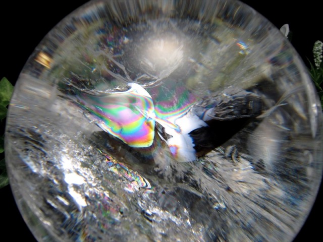 ※このサイズでこの透明度、この虹の量、そしてこの価格!! バイヤー厳選の逸品、今回入荷の天然虹入り水晶はオススメですよ。 最高品質、5A級クラスの透明度と美しい虹の入った水晶丸玉です。 【レインボー水晶】 あらゆる水晶の中で、光の屈折により美しく輝く七色の虹が見えるものだけが、レインボー水晶と呼ばれ、その中でも美しく輝くレインボー水晶は、数万個に1個の希少価値があるといわれています。 レインボー水晶は、水晶自ら受けた傷を癒し七色の虹の光を持つために「癒しに」関して強力なパワーを持つといわれています。 また、負の運気を好転させる力を持つともいわれております。 インテリアとしても天然石ならではの神秘的な魅力があり、おススメの逸品です。 |