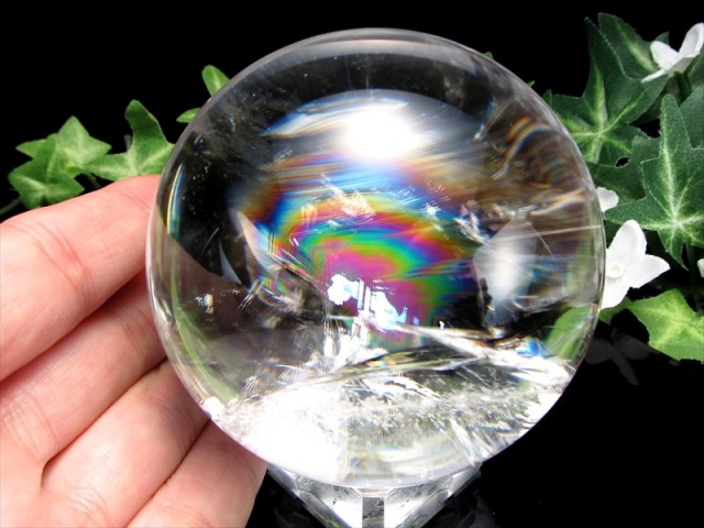 ※このサイズでこの透明度、この虹の量、そしてこの価格!! バイヤー厳選の逸品、今回入荷の天然虹入り水晶はオススメですよ。 最高品質、5A級クラスの透明度と美しい虹の入った水晶丸玉です。 【レインボー水晶】 あらゆる水晶の中で、光の屈折により美しく輝く七色の虹が見えるものだけが、レインボー水晶と呼ばれ、その中でも美しく輝くレインボー水晶は、数万個に1個の希少価値があるといわれています。 レインボー水晶は、水晶自ら受けた傷を癒し七色の虹の光を持つために「癒しに」関して強力なパワーを持つといわれています。 また、負の運気を好転させる力を持つともいわれております。 インテリアとしても天然石ならではの神秘的な魅力があり、おススメの逸品です。 |