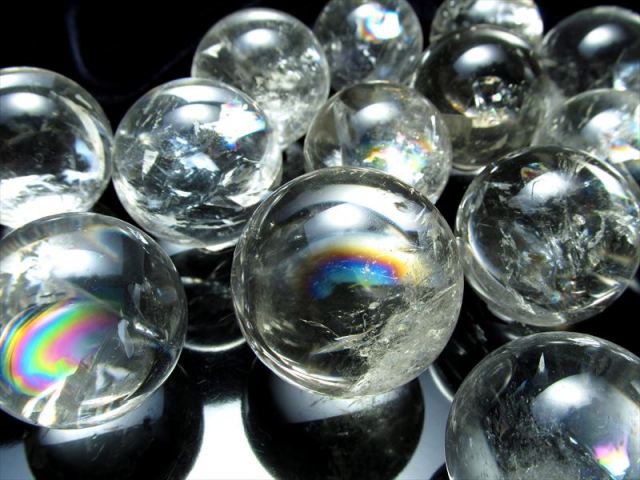 虹入り水晶! 丸玉入荷 大人気の水晶丸玉シリーズに、最高品質の虹入り丸玉が入荷です!! 透明感抜群で照りのある水晶の中に、大小様々なレインボーが入っています 【レインボー水晶】 あらゆる水晶の中で、光の屈折により美しく輝く七色の虹が見えるものだけがレインボー水晶と呼ばれ、数万個に1個の希少価値があるといわれています。 レインボー水晶は、水晶自ら受けた傷を癒し七色の虹の光を持つために「癒しに」関して強力なパワーを持つといわれています。 また、負の運気を好転させる力を持つともいわれております。 インテリアとしても天然石ならではの神秘的な魅力があり、おススメの逸品です ストーンキーワード 強力な浄化作用。 潜在能力の開花、心身の活性化。 石同士の仲をとりもつ。 |