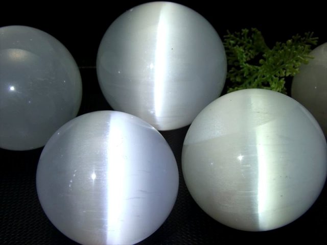 美品キャッツアイ セレナイト・丸玉置物 つやつやのキャッツアイ・セレナイトスフィアが入荷致しました! 癒しの石としてヒーラーの方などの間でよく用いられる石です! 猫目のように光るキャッツアイ効果が美しく出ており、独自の魅力を放っています! 画像の様に、キャッツアイ効果の出る方向の横面では、背景の黒が透けて見える透明感です、とても高品質で神秘的なセレナイトスフィアですよ お部屋のインテリアや浄化、御守り石としても是非。 様々な用途で人気の高い丸玉商品ですのでお買い逃し無く! 【セレナイトとは】 石膏の一種で、その中で無色透明なものがセレナイトと呼ばれます。 別名「聖母マリアのガラス」とも呼ばれ、かつては実際に窓ガラスなどに利用されることもあったそうです。 透明度抜群で美しいキャッツアイ効果がハッキリ出ています! お店の目玉商品に是非!! |