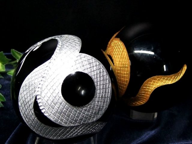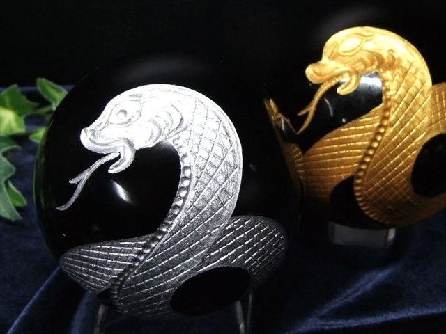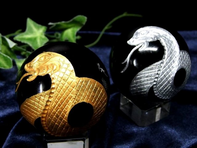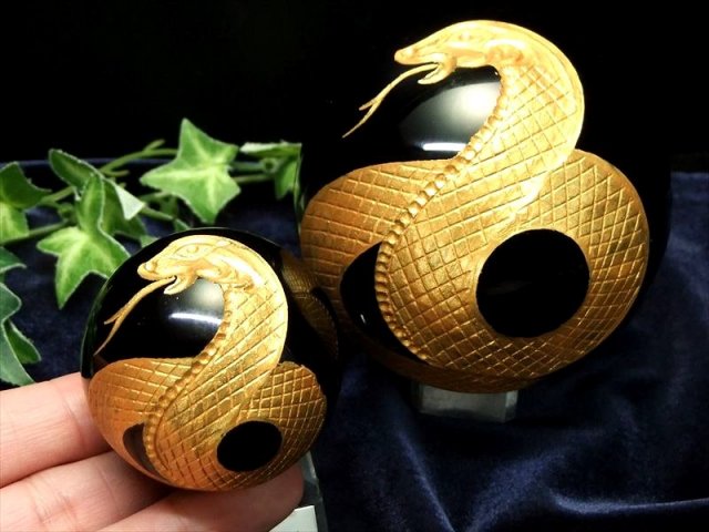 今年の干支「巳」が彫刻されたオブシディアン丸玉置物が限定入荷しました。 天然のオブシディアンを使用しており、艶感が品質の高さを物語っています。 熟練した職人によって一つ一つ丁寧に彫り込まれたデザインは見事です。 精巧な彫刻によって、謎めいた存在感が見事に表現されています。 荒々しさと神秘的な要素が融合した、細部まで丁寧に表現された彫刻置物です。 【意味合い・云われ・伝承等】 オブシディアンは『魔除けの石』として有名で、主に【怒り・悲しみ・恐怖】などの、ネガティブなエネルギーから持ち主を守る力があると云われています。 また直接的なエネルギーを持ち、マイナスの感情や衝動を抑え、精神的成長のサポートをすると云われます。 【金運・幸運の象徴「神の使い」と言われるヘビ】 ヘビ(巳)を持つと「実(巳)入り」すると云われ、金運アップとして古くから人気のある動物で、 ヘビの抜け殻を財布に入れておくと金運が上がるというおまじないもあります。 この「巳」という漢字は、胎児の形から派生しており、(未来がある・子孫繁栄・家族が平和になる)といった意味もあります。 ヘビは長期間餌を食べなくても生きて行ける生命力を持っていることから、精力や生命力の象徴でもあるのです。 インドではヘビ(白蛇)は金運をつかさどる弁財天の化身とされ、財運を招くと言われています。 蛇は繰り返し脱皮をして成長することから無限の意味を持ち、知恵・富・繁栄をもたらすと言われ、男女共に大人気の動物です。 |