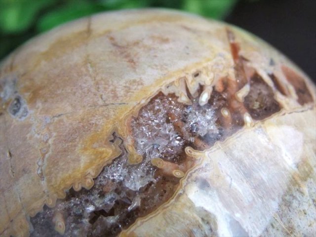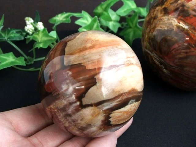 激レア!ペトリファイドウッド 丸玉 珪化木【ペトリファイドウッド】という、遥か昔には樹木だったものが、時を経て化石になった激レア品です! こちらはそんなペトリファイドウッドの磨き丸玉!! 珪化木の模様がまるで油絵の絵画の様に綺麗に出ている逸品ですよ 飾る角度によって様々な表情を見せる美しい丸玉です、毎日少しずつ角度を変えて飾ってください。 見飽きる事も無く、毎日発見がありますよ! 今回の入荷分はピーターサイトのように綺麗な模様の物も。 バイヤーのセレクト品質でオススメです。 【ストーンキーワード】 決断力を高める 固い意志を持てる 心身の安定 |