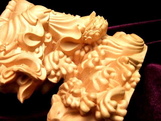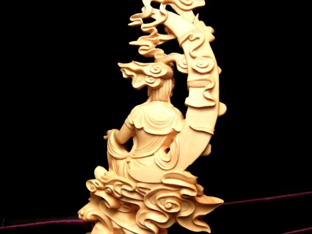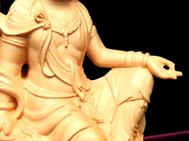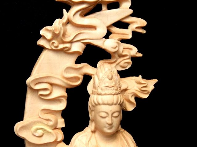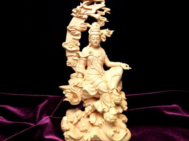 人気の置物シリーズにオールウッドの観音様置物が登場です! 観音様本体の背中部分や、足、上部の飾り、印を結ぶ指まで透かし彫刻で彫られた逸品 透かし彫りなので、正面から見た時の立体感がより強調され、神々しいオーラを放ちます。 観音菩薩の起源は中国への仏教伝来よりもはるかに古く、日本では深く信仰の対象とされていることは言うまでもありません。 こちらは水月観音(すいげつかんのん)という種類で、水面にくつろいだ姿で座っている観音様です。 水面にうつった月を眺めている様子が彫られています。 【仏像の姿勢】 座っている像は人々を救う方法を考えておられる姿とされています。 【香榧木】 榧木(カヤ木)の木は堅実で、腐りにくく、造船や高級の家具は材料としてよく用いられます。 木目は繊細、色つやは金色で美しく仏像の彫刻によく使われ癒しの木とされています。 浄化用さざれと一緒に置いたり、もちろん単体でインテリアにも!お守りとしても良しです。 |